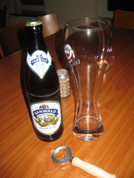 Ok … third day … third beer. This one is from the same brewery as the first day’s beer — Sanwald. It is also a Weizen … however, today’s was a Kristall Weizen (as opposed to the Hefe from the first day).