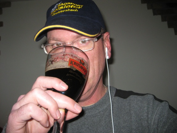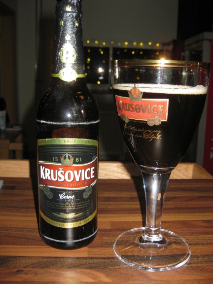 Tonight I went to the new restaurant here where I live. They had a very nice Czech beer — this one was a “brunette.” Of course, as all should know, brunettes are my favorite … and this one was no exception. This beer is called Krusovice … this brewery has only been making beer since 1581. They are new to this!
