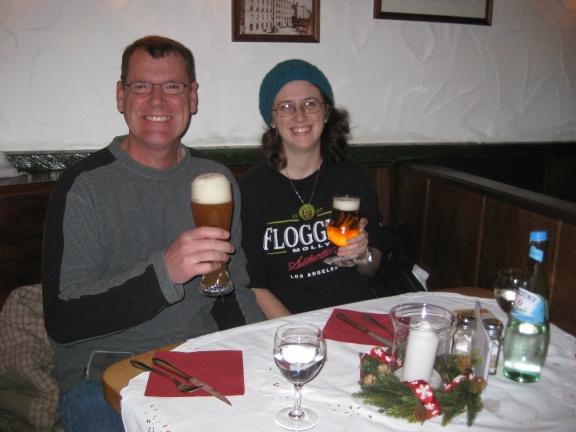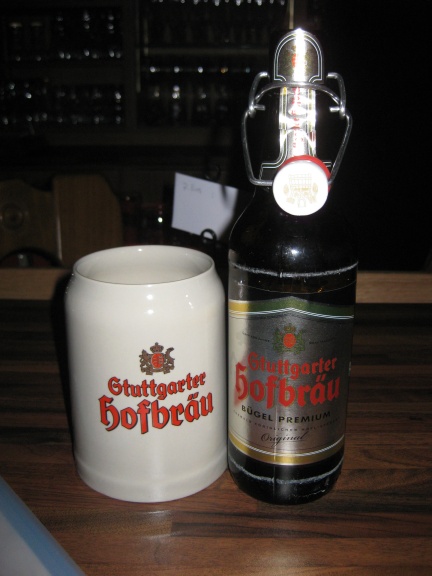 My daughter came to visit me for Christmas, so we went downtown to the Christmas market (because I picked her up at the main train station in Stuttgart). We had a nice lunch together (nice picture, right?) and ended up the evening at a local restaurant. I went back to the Stuttgarter Hofbrau line of beers: Buegel Pilsner.