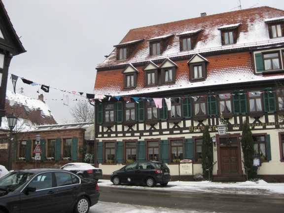 When I went to this town I thought I might have to eat at a “fast food” place — called an Imbiss usually. However, there was a wonderful restaurant right downtown and I had a wild game plate with red cabbage and homemade noodles. Yummy!