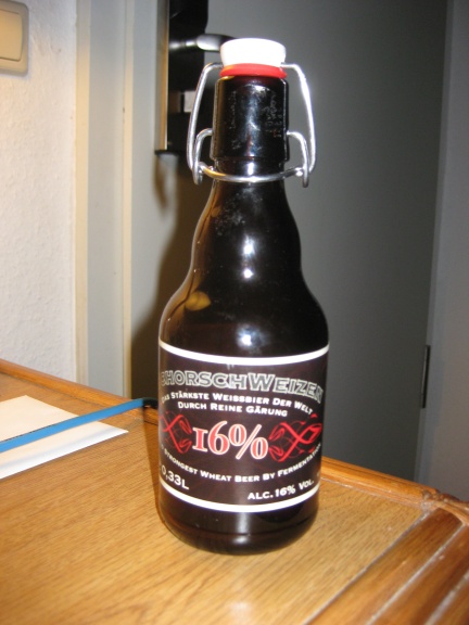 I received my 120th beer at my favorite local Mexican Food restaurant. My friend (and the owner) enjoyed my story about a different beer every day and he provided me with quite a unique beer for my 120th: the Schorschbraeu “16% ABV Schorsch Weizen.”