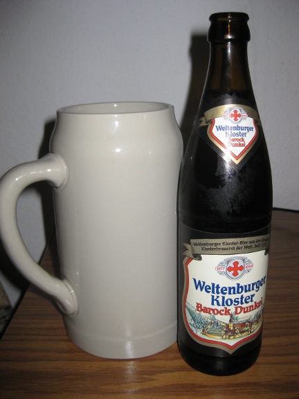Tonight I enjoyed another Kloster brew — this one from Weltenburg again. This particular beer was their Weltenburger Barock Dunkel. This beer won a Gold Medal at the World Beer Cub as the best Dunkel in the world–twice! (2004, 2008).
