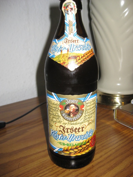 Tonight I went back to my Kloster beer collection … I pulled out an Irseer Brauerei “UrWeisse.” This nice hefeweizen was just the ticket — it gave me that banana smell right off the bat … and it was uniformly balanced, a little sweet — just a wonderful brew. Yummy!