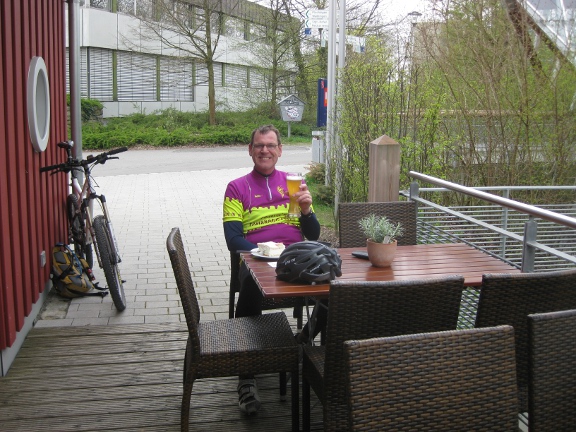 Bobby, don’t read this … Ok, go ahead. Today I took another nice spin along the Neckar River… I rode through some woods, a little single-track, up over a couple of hills, then back down to the river. I followed one river to where it connects with the Neckar and stopped and had a piece of cake (kaese-sahne-kuchen) and a nice Weizen Radler.
