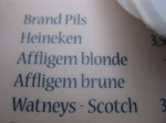 Affligem is an Abbey brewery … although incorporated, the beer is still brewed to the traditional recipe from the Abbey. The beer menu (see below) said Brune; this was actually the Affligem Dubbel — an excellent beer to kick off my latest visit to Belgium.