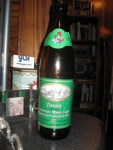I was surprised by a friend’s refrigerator today — I opened the door to retrieve another Sam Adams Lager when I saw this green-labeled bottle behind a couple of condiments. I pulled it out and peered at it (without my reading glasses) and was able to decipher that it was a Czech Beer.