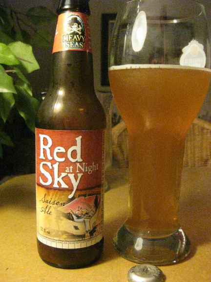 Today I moved away from the IPAs … I’ve been on a long kick with them … but I think it’s just because I’m catching up from my six months away from them. Plus, I really like IPAs. Oh well. Another of my favorite styles is the Saison. I was at Whole Foods today and ran across this beer. My daughter collects bottle caps so we were looking at beers from that perspective. The Heavy Seas brewery has a pretty cool bottle cap…especially if you like pirates, which she does. Then I looked at the Bottle: Red Sky at Night. I couldn’t tell what this beer was until I looked closer. As soon as I saw it was a Saison, I got a sixer. ha ha!