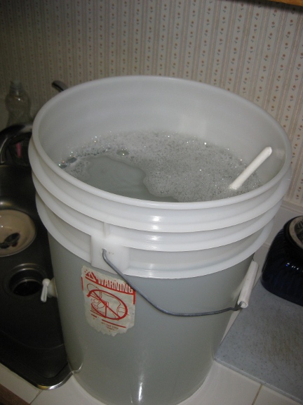 1) Here it is waiting for transfer to secondary. When I popped off the top, you can tell that it was really active — thank goodness for extra room in this bucket!