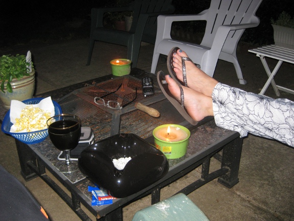 My wife and I are relaxing this weekend just enjoying ourselves — bike riding, hiking, sampling wines, beers, and fireworks … tonight, we’ve just been hanging around enjoying the beautiful weather. We were sitting on our patio this evening — she drinking a gluten-free beer: Redbridge … and me drinking a beer from The Bruery: 2 Turtle Doves.