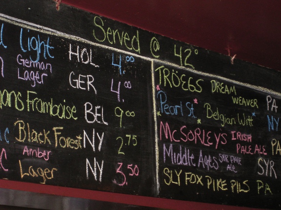 A couple of weekends ago I was heading up to Ottawa to visit some wonderful friends and I realized that there were two places on the “All About Beer” Top 125 places list in Syracuse, NY (on my way). Well, I obviously had to stop! I chose my namesake location on the way up–Clark’s Ale House–and planned on stopping at the Blue Tusk on the way back. Unfortunately the Blue Tusk was closed on Sundays (they were cleaning the tap lines when I was there–yes! I love the place and haven’t even been there yet!).