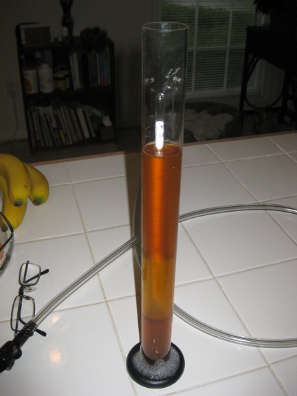 This is a balanced (high octane) beer … it just doesn’t have the hops kick I was expecting. It is actually over 9% ABV … so it is an Imperial … it needed more kick from the hops. Here are some pictures of the transfer from secondary fermentation to kegging. Notice the picture that shows the final gravity … yes… I had an excellent mash efficiency (78.2%) and a great attenuation (82.2%) … OG was 1.082 and FG was 1.013. Wow.