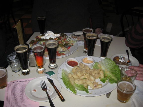 Port City Essential Pale Ale, Mad Fox Diabolik Belgian Strong Ale, Great Lakes Edmund Fitzgerald Porter, Dominion Millennium English Style Barleywine, and the Starr Hill Cryptical Imperial Stout. I tried to order beers someone from Colorado wouldn’t normally have available. Port City, the new brewery, is doing a very nice job. I really enjoyed all of these beers. The Starr Hill was good, but didn’t seem to match its style claim. The Edmund Fitzgerald was wonderful.
