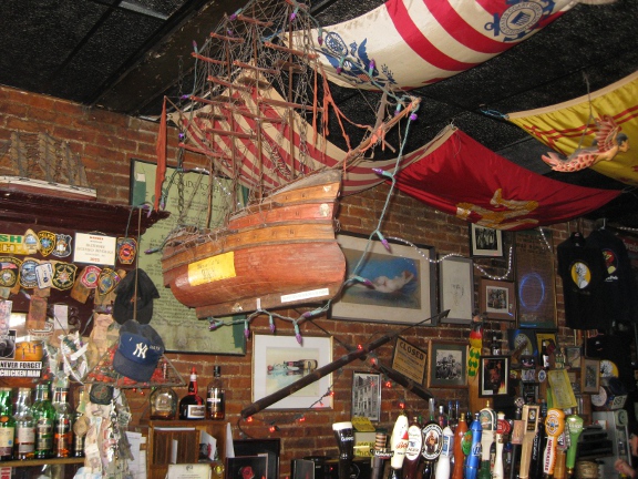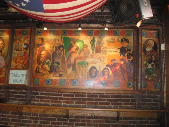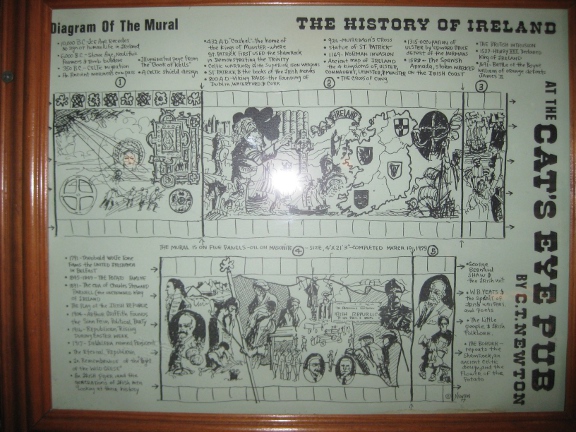 I can see why this place is on the list. Just from the outside you think “this place has character.” You walk inside, and “Bam!” It is a definite throw-back pub. Fantastic. It has wood carvings, and murals, and model boats. Everything you would expect out of an Irish Pub in Clipper City! The mural in the pictures below depicts the “History of Ireland.” It even has a printed description so you can read about it.