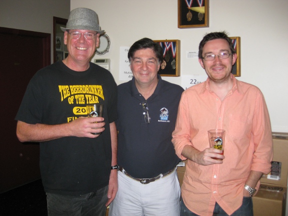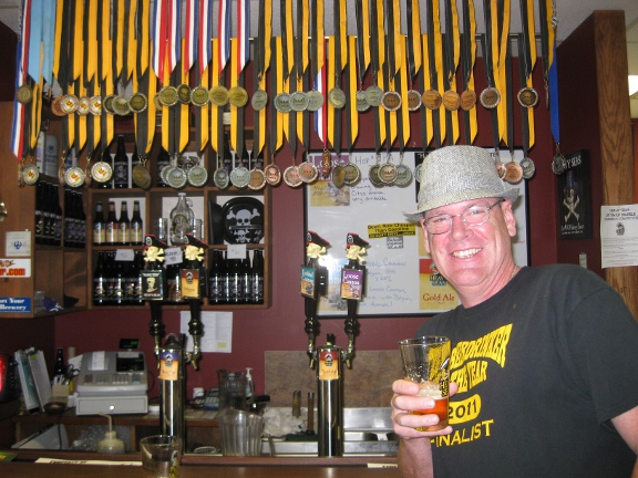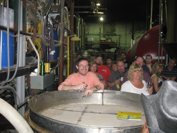 After our tour, we met the owner (Hugh Sisson). His office space is right where the tasting room is … that’s the kind of brewery I like! He was kind enough to take a picture with us, but he must have been distracted …