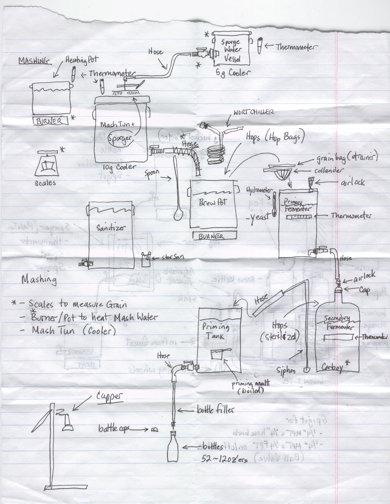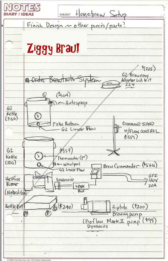 After 20+ years of using a hodgepodge of brewing equipment — albeit it worked (mostly) well — I decided to invest in a new “brewery” for myself this year. Actually, I had a design in place for my brewery since 2002+ … here are a few drawings I’ve done through the years representing what I wanted. The first two images were my original design … some time later I did the next two drawings. The final drawing was a recent design for my brewery based upon all Blichmann equipment. I was trying to incorporate it with my existing Blichmann equipment — that’s the reason I didn’t just go with a Breweasy system.