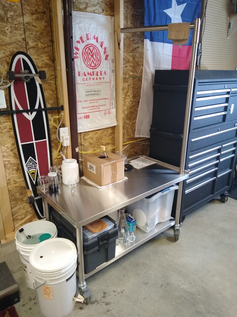 Before I could get my brewery up and running, I had to have a little work done. I had a 240V isolated circuit installed to plug into directly — 30A worked nicely — no popped fuses! Next, I searched around for a rolling table to use with it–one low enough to see into the kettle. After much searching the folks over at Okanagan Stainless were kind enough to build me a fantastic Stainless Steel table — perfect for my need! They do such awesome work!