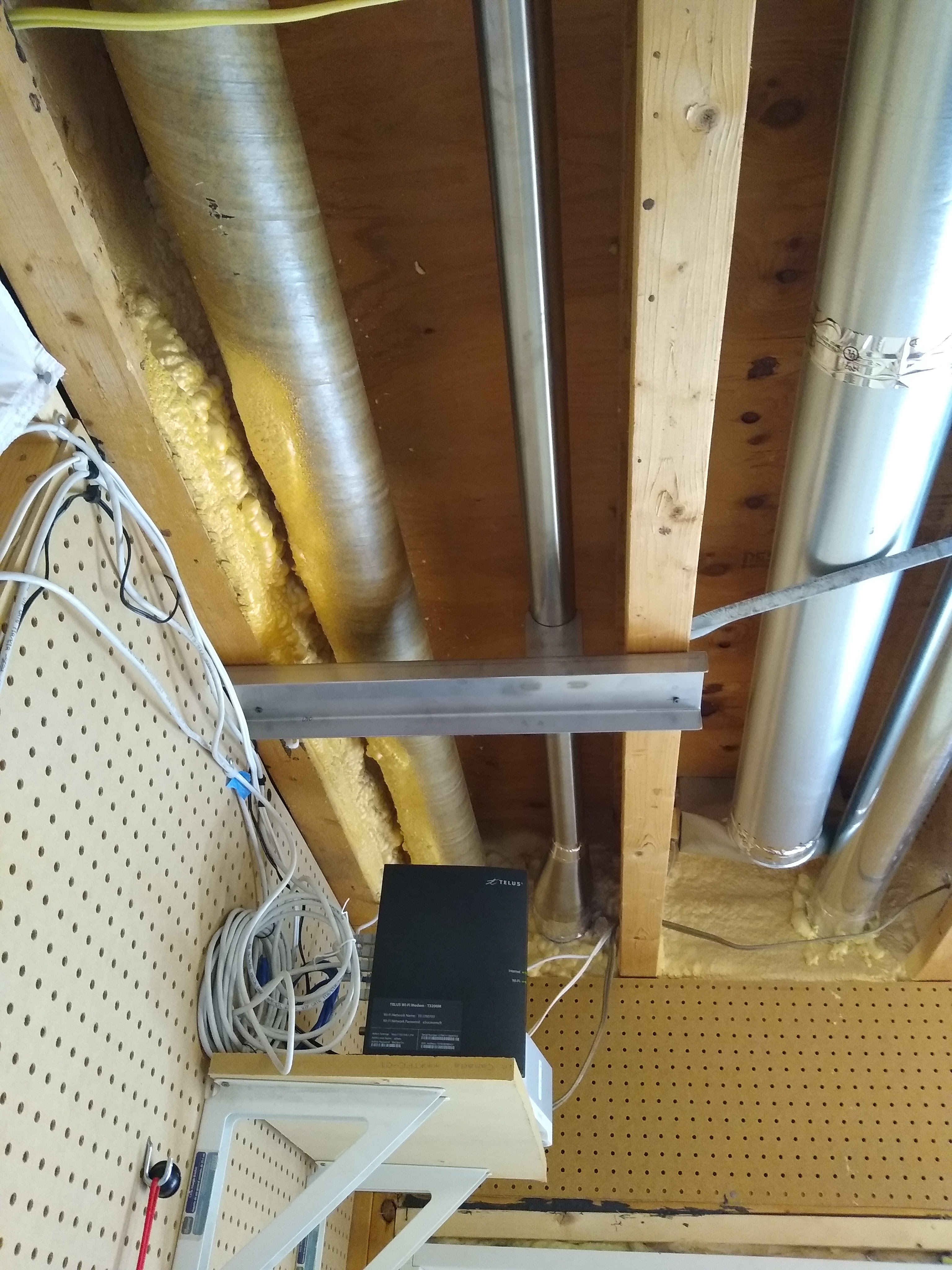 With my table and power ready, the final piece of the puzzle was venting the steam out of the “Brewery.” Fortunately, I had two extraneous vent pipes leading out of the house from the old furnace — I decided to attempt to use one of those in the process. I drew up my design and bought the pieces/parts to see if I could make it work.