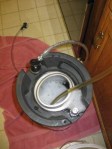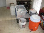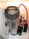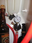 You can see my CO2 cartridge here — it is a 20 oz paintball tank — works great! I’ve got two that I swap out, but they both last a long time. You can see in the 3rd picture that I’ve got the pressure kicked up and am force carbonating it in the fridge. I just had a sample today–it is carbonated nicely … I’ll probably leave it at that pressure for another day or so and then move it down. I’ll post a couple of final beer photos. And, as usual, there’s always some clean up to do!