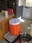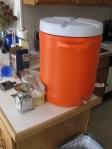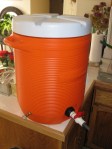 I finally racked my Belgian-style Witbier to the secondary fermentation “tank.” I left it in primary fermentation for 15 days … seems a little long, but it kept being active. I think the temperature stayed between 68 and 70 degrees pretty much the entire time (except when we lost electricity and the temp in the house dropped to 54 degrees … then it was a little cooler! <smile>).