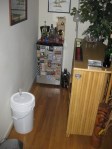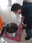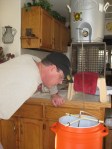 Finally, we boiled it all up outside … tossed our ingredients in at the (mostly) appropriate times, and sat back and had a couple of cold ones. Here’s a few more pictures of the process. Because it is so cold in my house, I had to keep the primary fermentor up behind my bar. Oh, we did hit the projected OG pretty much right on the nose–1.052!