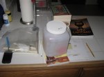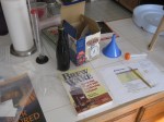 My friend, Brian, came over today and joined in a little brewing and beer drinking. It was time to put all the pieces together and get the first brew of the year done. These first few pictures are of the initial preparation: equipment set up, measuring and note taking–making sure I have it set in my mind how and when to get things done.