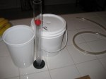 Also, you can see that the Specific Gravity is 1.024 (approx). My target Final Gravity is 1.010 … again, I think I have some suspended particles that give it a little higher gravity; however, it was still bubbling away after I transferred it. Of course, you always want to tast the intermediate “beer”–it was delicious. I can’t wait for the final product!