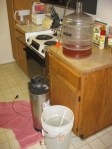 You’ll notice that I use a “Better Bottle” as my secondary fermentation “tank.” I typically use the “bucket” for primary fermentation because it always makes it easy to transfer (and clean up). You can see that in these pictures — you can definitely see what I have to clean!