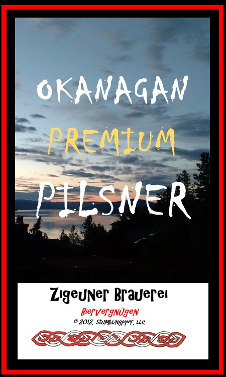13. German-style Pilsner (Name: OK Premium Pils). This is a mid-winter beer for me to make — so it can lager into the early spring summer. This year I made the Eis-bock instead. OK stands for Okanagan (where I live), but also “OK” in the sense of OK. I found it funny using OK and Premium together.