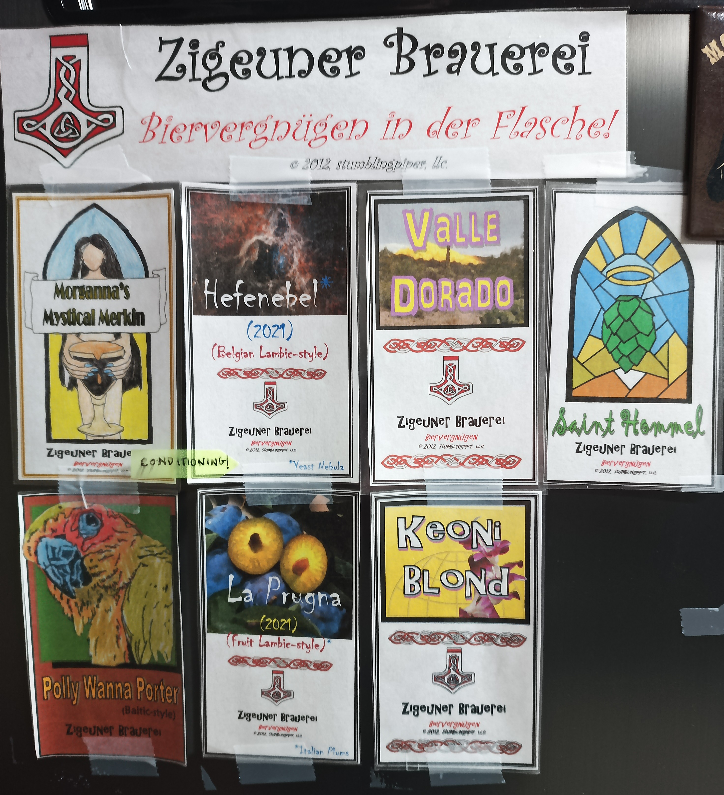 10. Bourbon-oaked Imperial Stout (Name: Morganna’s Mystical Merkin) This beer has been great–I’ll do a whole post on this one later (Brewing again in March 2024). I char my own oak staves and soak them in Maker’s Mark Bourbon. This will be the fifth iteration — it just keeps getting better. I have a bottle from each of the last 3 years (I think). Time for a vertical tasting!